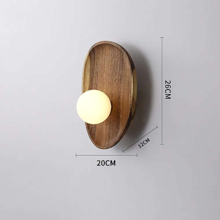 Серия настенных светильников с шарообразным плафоном из молочного стекла на скругленном вогнутом основании из древесного массива