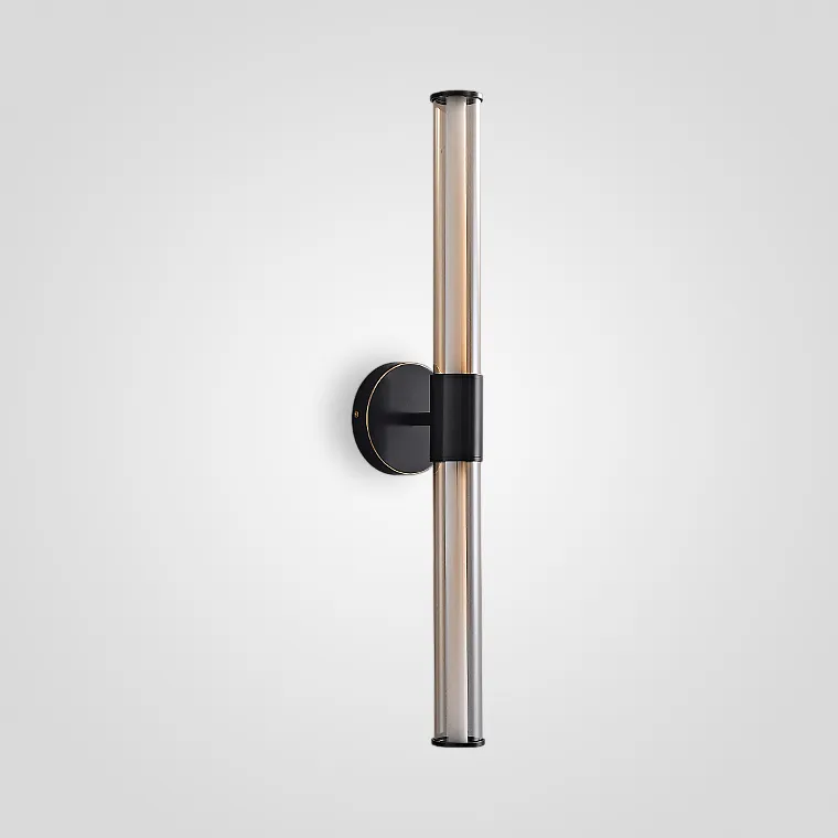 Настенный светильник из удлиненным цилиндрическим корпусом из стекла и латуни