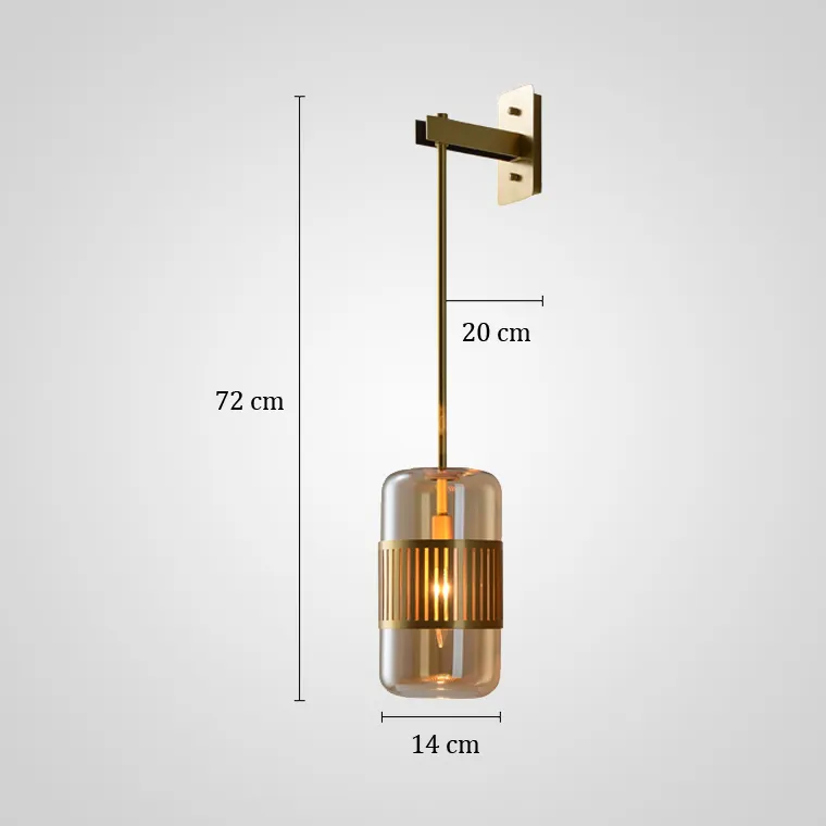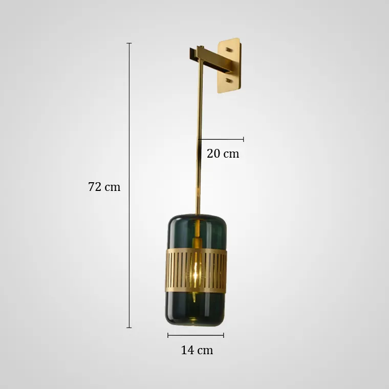 Настенный светильник с цилиндрическим плафоном из цветного стекла в металлическом обруче с вертикальными прорезями