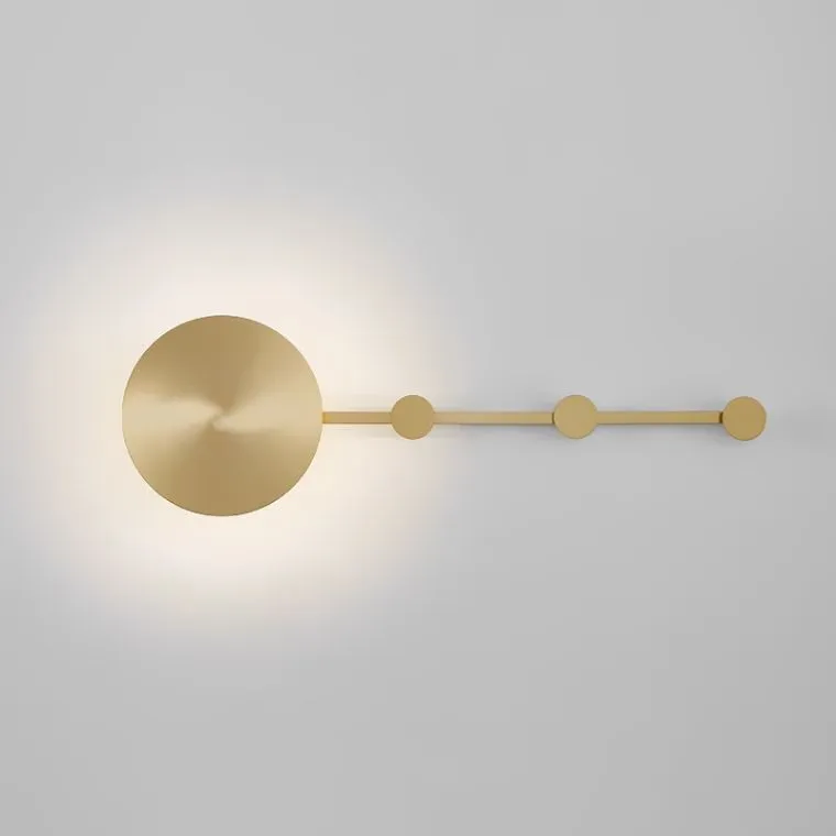 Серия настенных светильников, представленных в виде элегантных дисков с подсветкой и горизонтальной планкой с круглыми элементами, станет идеальным выбором для любителей геометрических форм. Уникальный стиль, сочетающий в себе черты лофта, индустриального и минимализма, привнесет в ваш интерьер ощущение современности и эксклюзивности.
