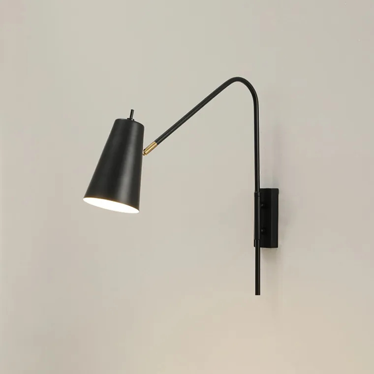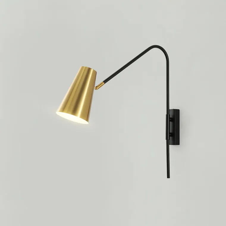 Серия настенных светильников с поворотным абажуром конической формы на угловом кронштейне