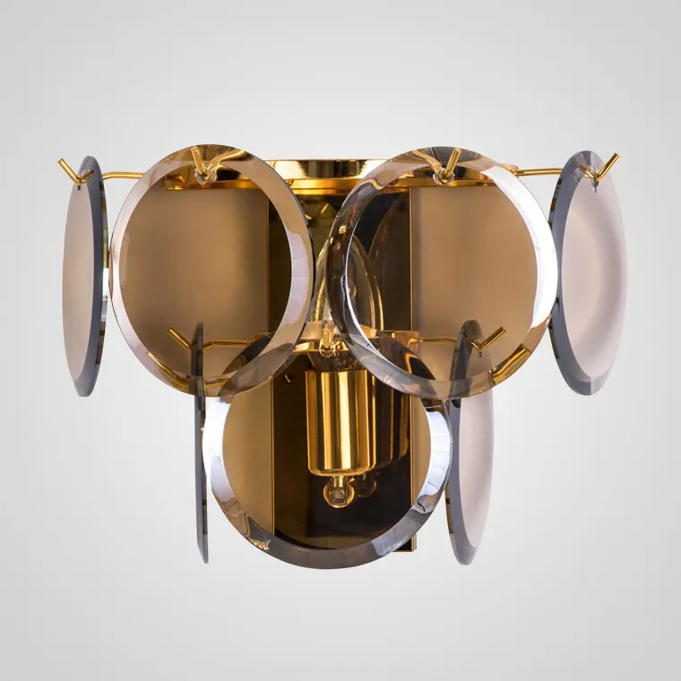 Серия настенных светильников с абажурами из декоративных стеклянных подвесок круглой формы с фасетированными краями