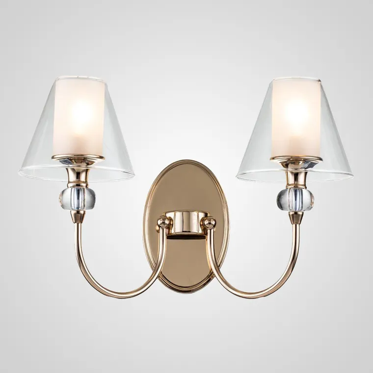 Настенный светильник с двойными конусовидными плафонами с изогнутым корпусом и декоративными вставками из стекла