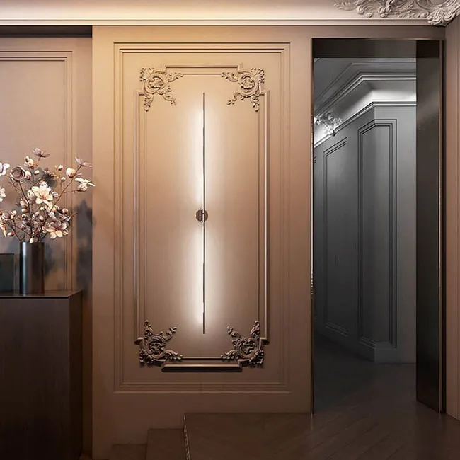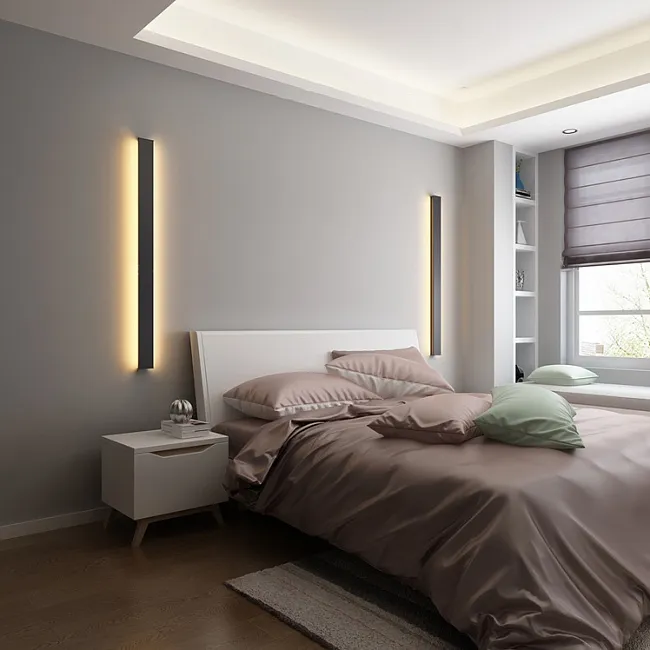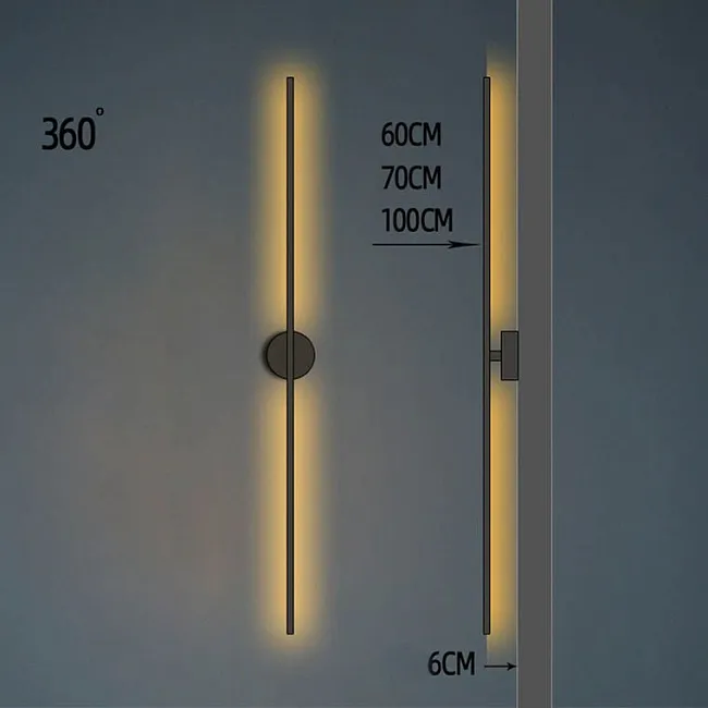 Минималистичный настенный светильник в виде поворотной планки, с углом поворота 350°