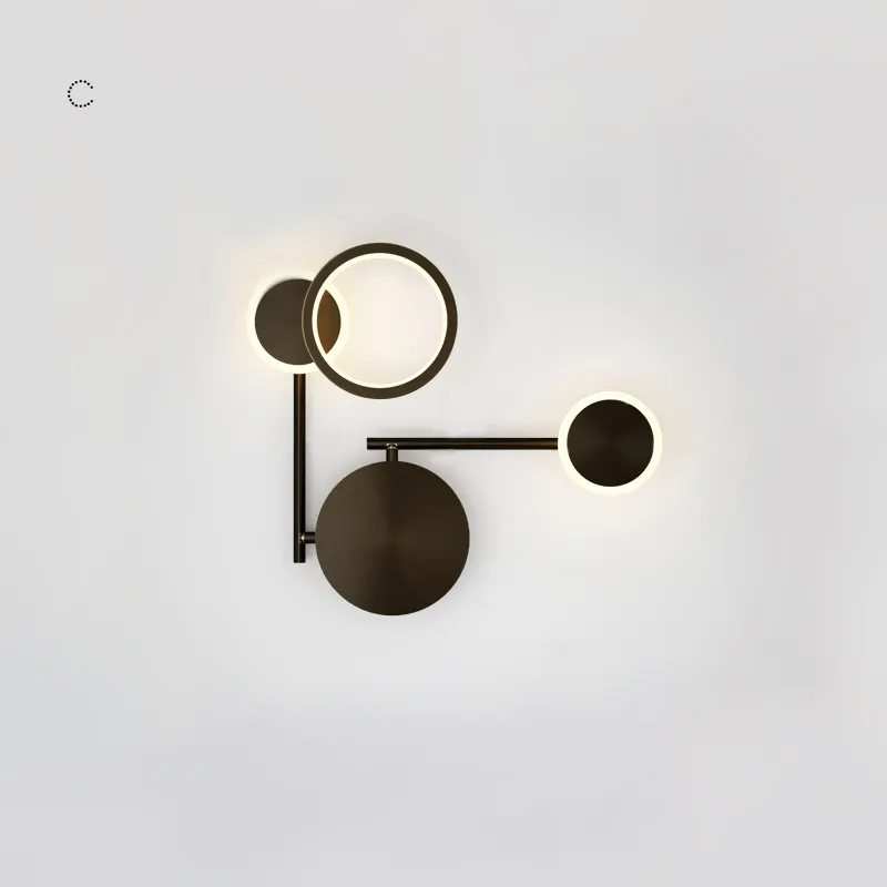 Серия настенных светодиодных светильников в виде композиции из светящихся дисков и колец