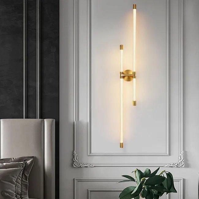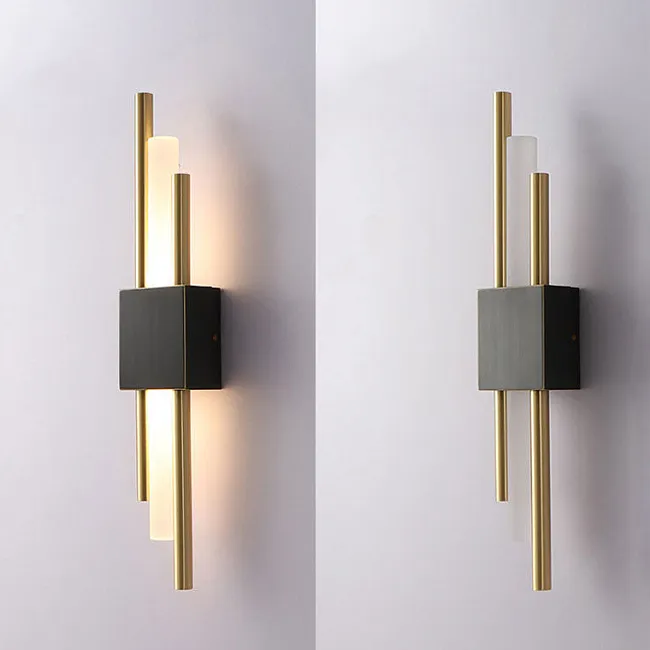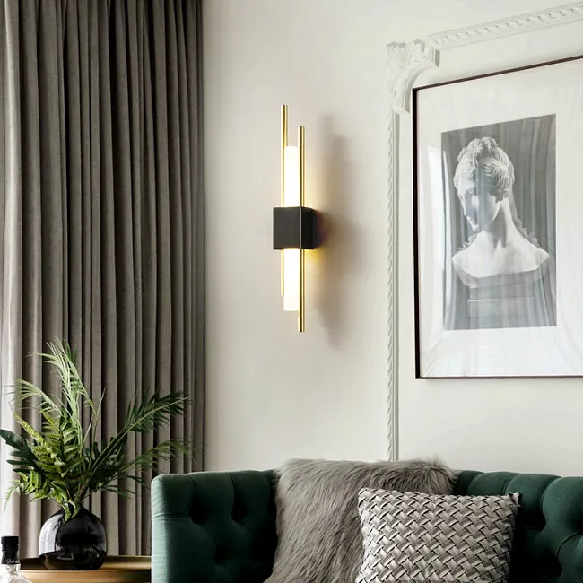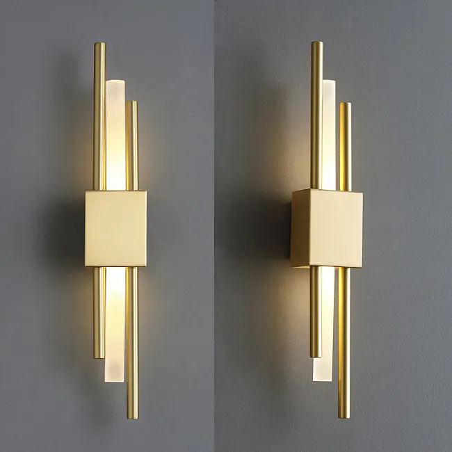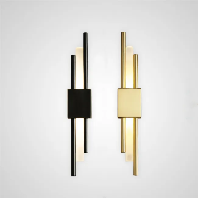 Серия настенных светодиодных светильников с двумя разноуровневыми прямоугольными плафонами на разделительном креплении