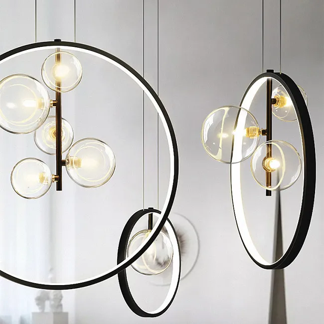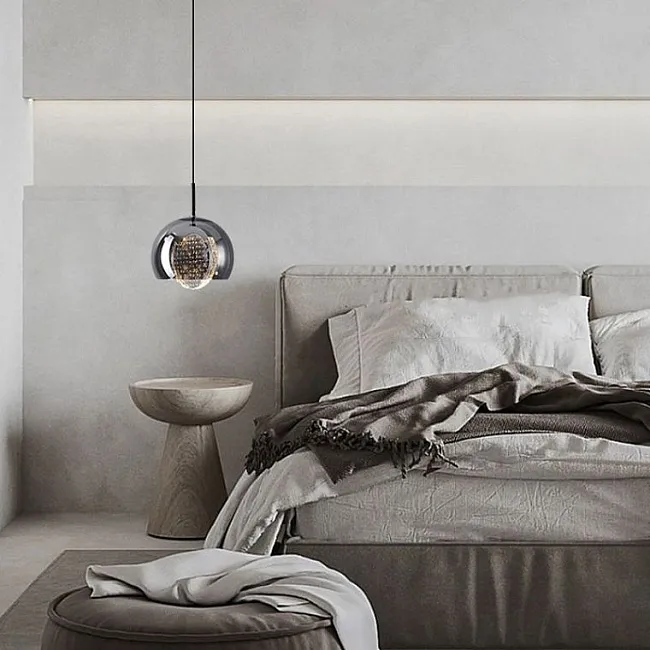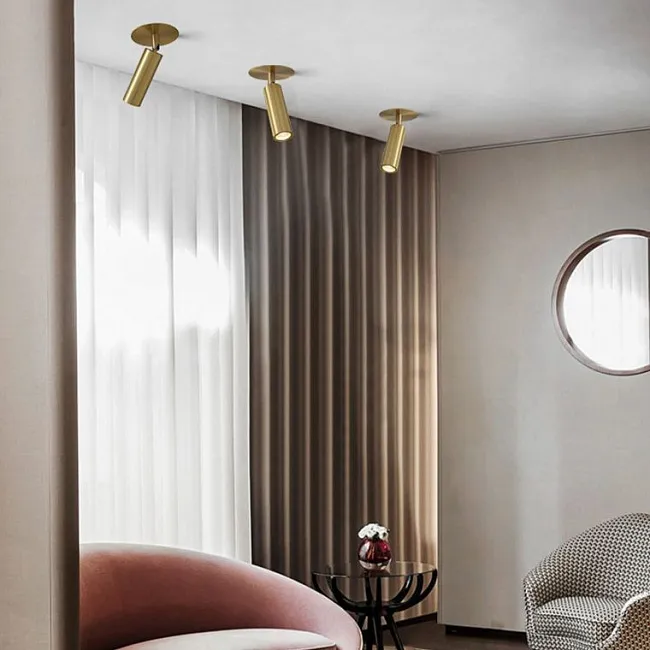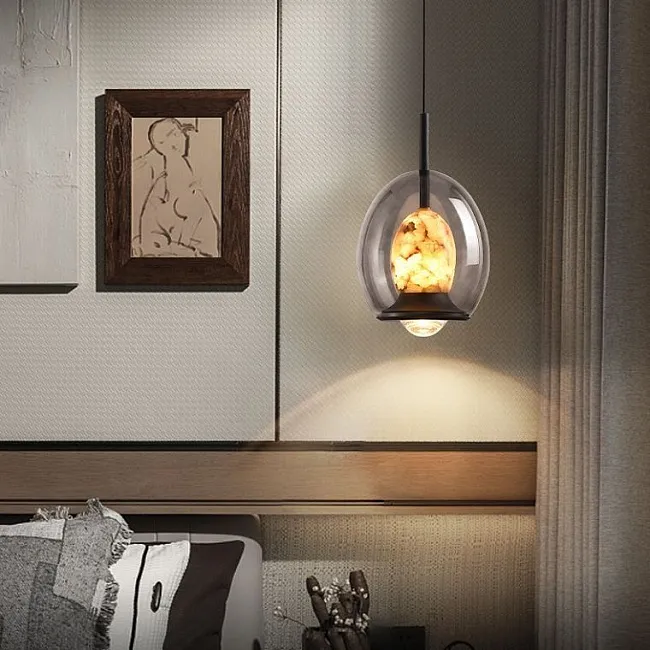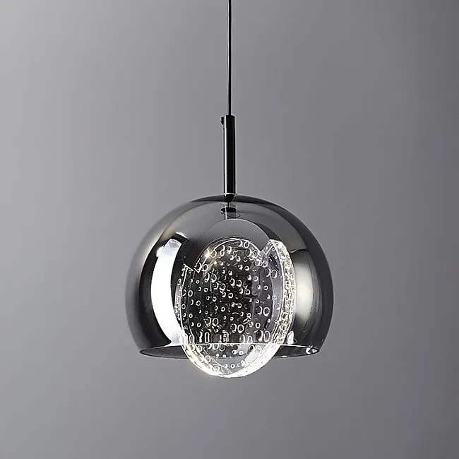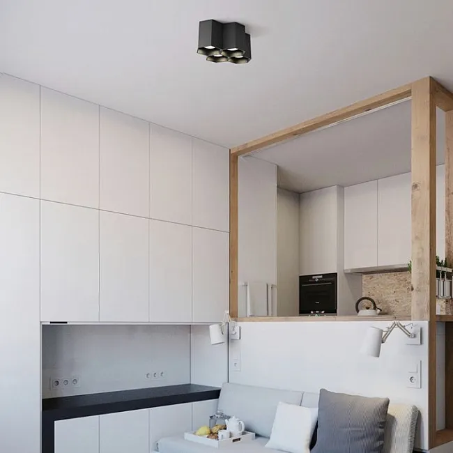Если вам понадобится изменять направление света, выбирайте трекинговые светильники или споты. Если же вы хотите отдельно акцентировать внимание на острое, обеденной столешнице или барной стойке, отдавайте предпочтение вариантам на длинных подвесах — например, с пространственными металлическими фигурами или из прозрачного стекла.