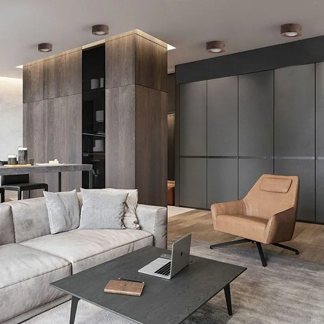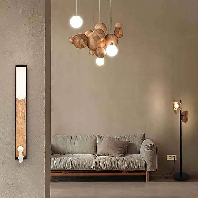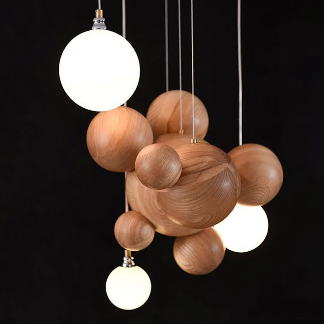 Традиционно такие модели используются в стилистике кантри, эко, этно, японский или скандинавский минимализм. Но фактурность дерева не только делает его интересным, но еще и позволяет вписать в разные интерьеры. Поэтому такие светильники с акцентами в виде колец, шаров, прямоугольных вставок будут уместны и в лофтовых, индустриальных, винтажных американских интерьерах.