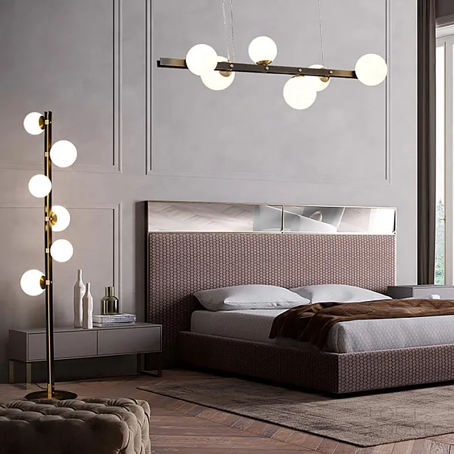 Здесь вы найдете современный светильник в спальню или сможете заказать модель в любом из актуальных направлений стиля, от баухауса до японского, от скандинавского и эко до ретро и модерна.
