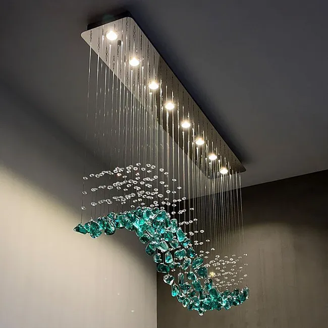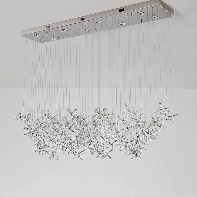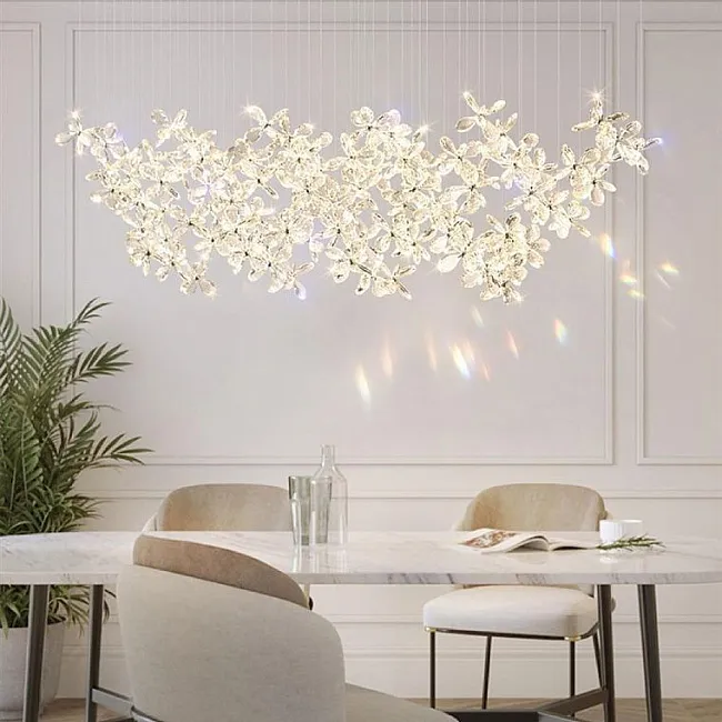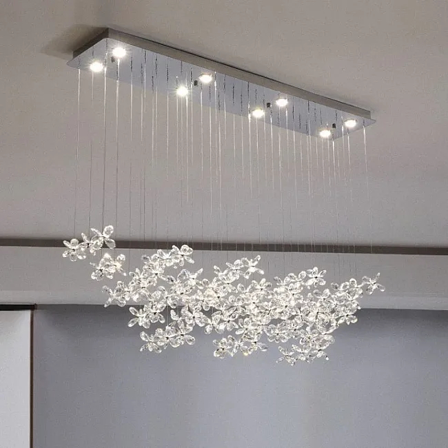 Светильник из хрусталя может быть с LED-лампой или под стандартный сменный цоколь. В этом сегменте очень популярны подвесные люстры со множественными источниками света. Свет, проходящий через кристаллы или подвески, преломляется и образует фантастические блики.