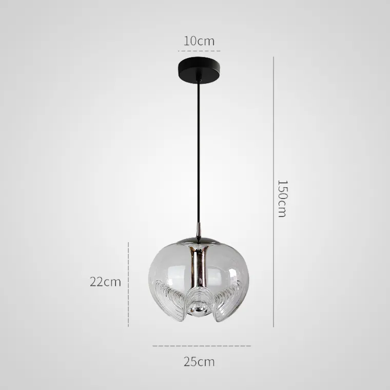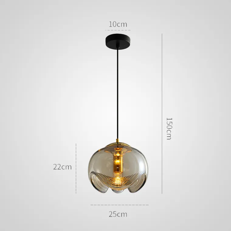 Серия подвесных светильников с шарообразным плафоном из выдувного стекла с волнообразным краем