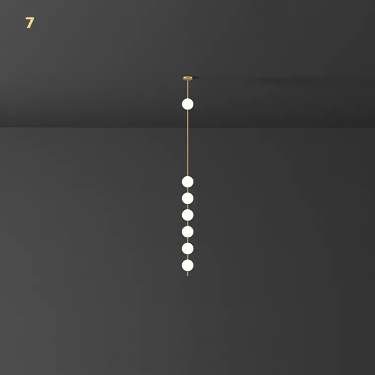 Серия светильников с белыми шарообразными плафонами на вертикальной стойке из настоящей латуни