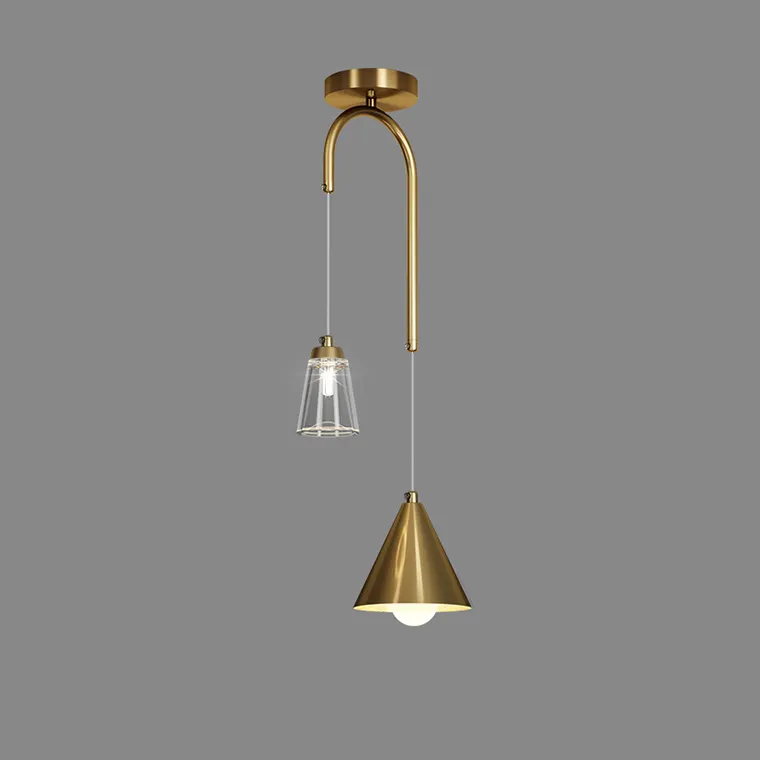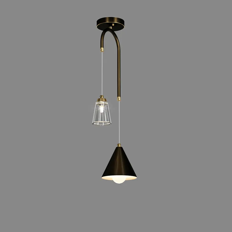 Подвесной светильник с двумя конусообразными плафонами из металла и стекла