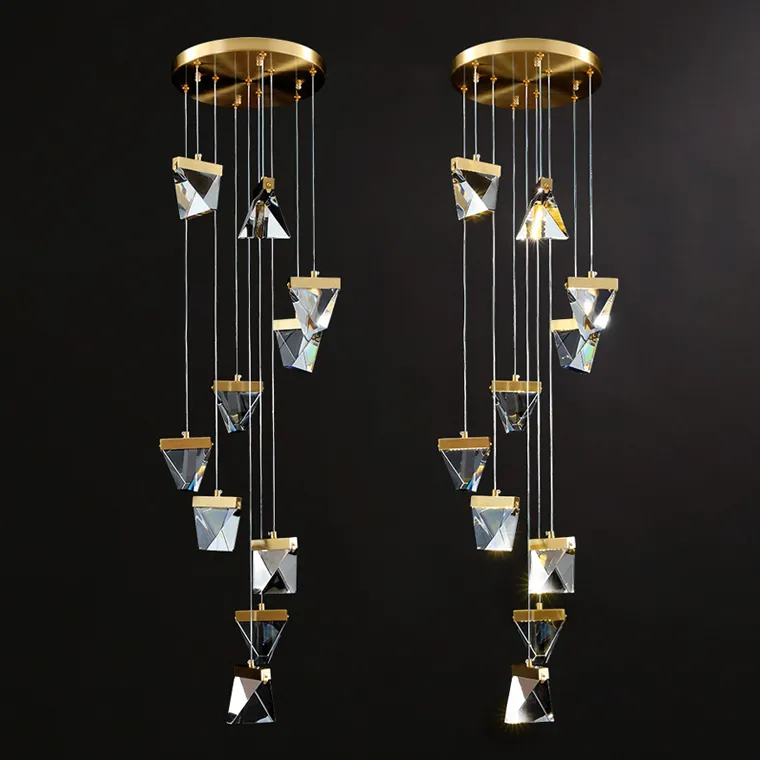 Готовая комбинация подвесных светильников в виде хрустальных кристаллов