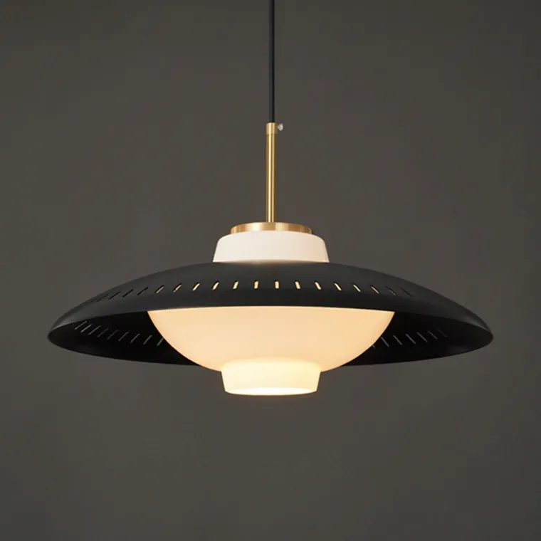 Серия подвесных светодиодных светильников в индустриальном стиле с дисковидным абажуром с перфорацией