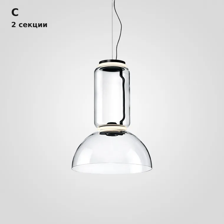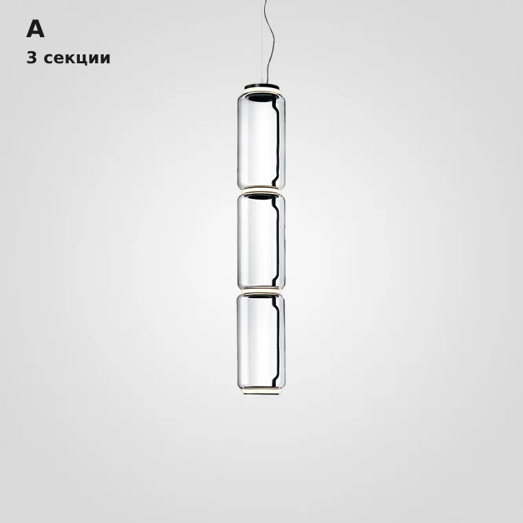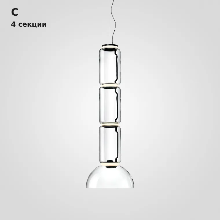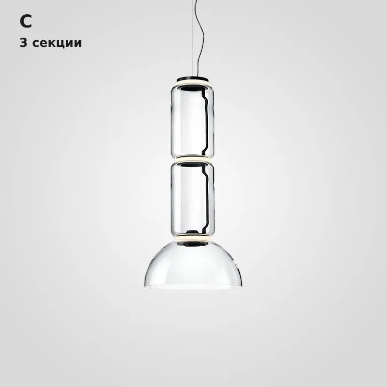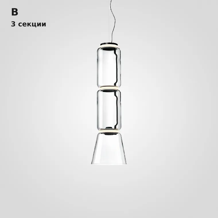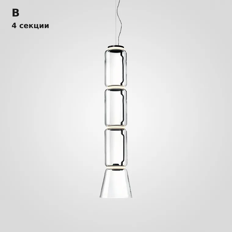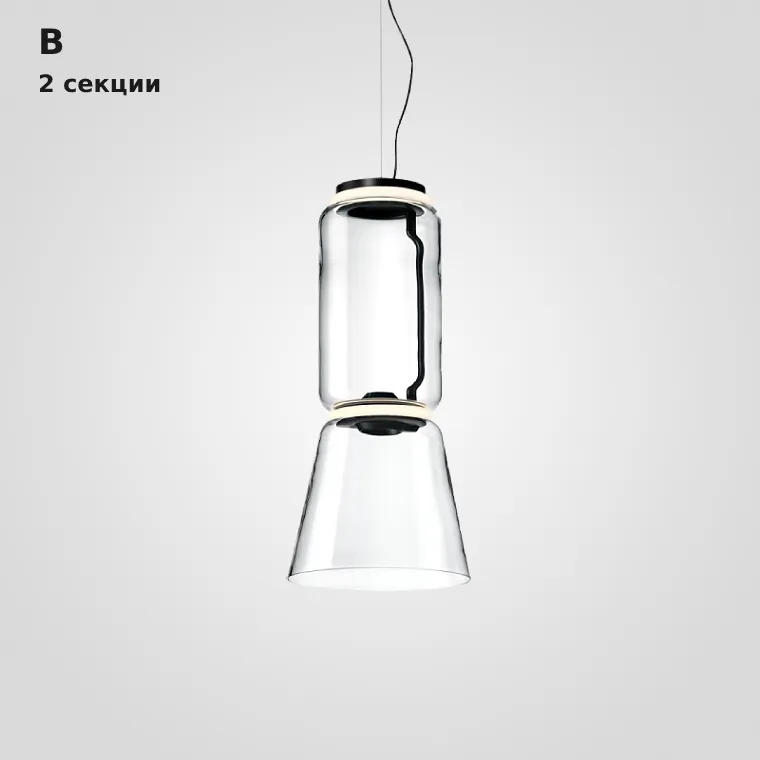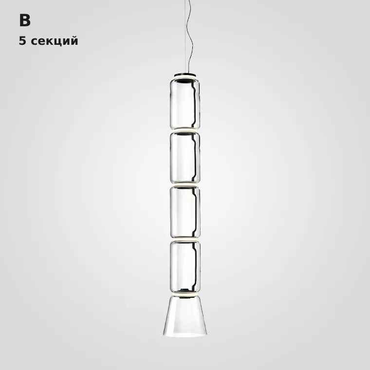 Серия подвесных светодиодных светильников в виде комбинации стеклянных секций различной формы со встроенным осветительным элементом