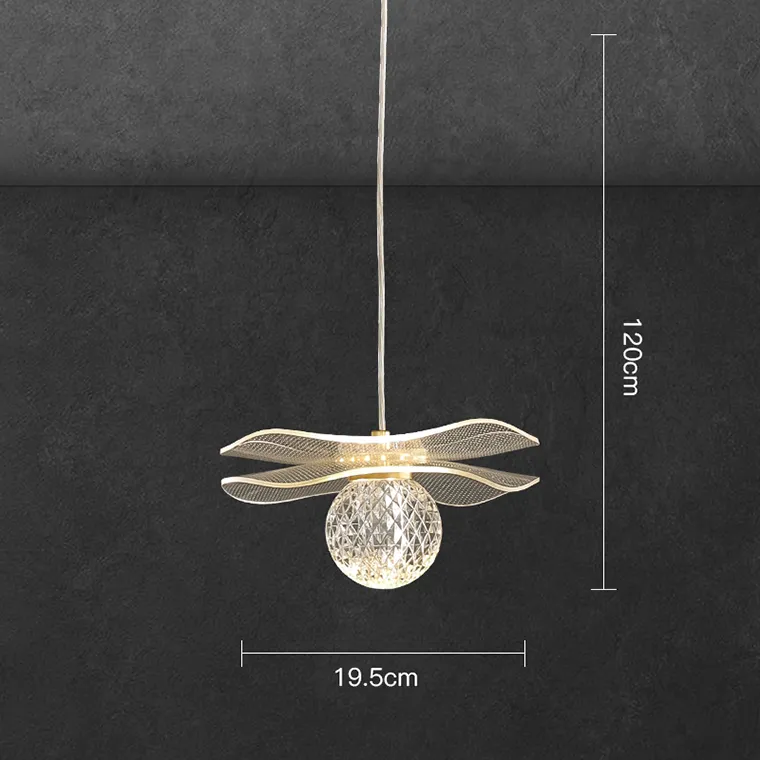 Серия подвесных светодиодных светильников с акриловыми изогнутыми пластинами с точечным паттерном и шарообразным резным плафоном
