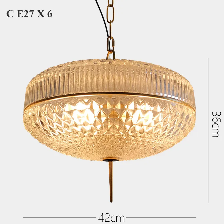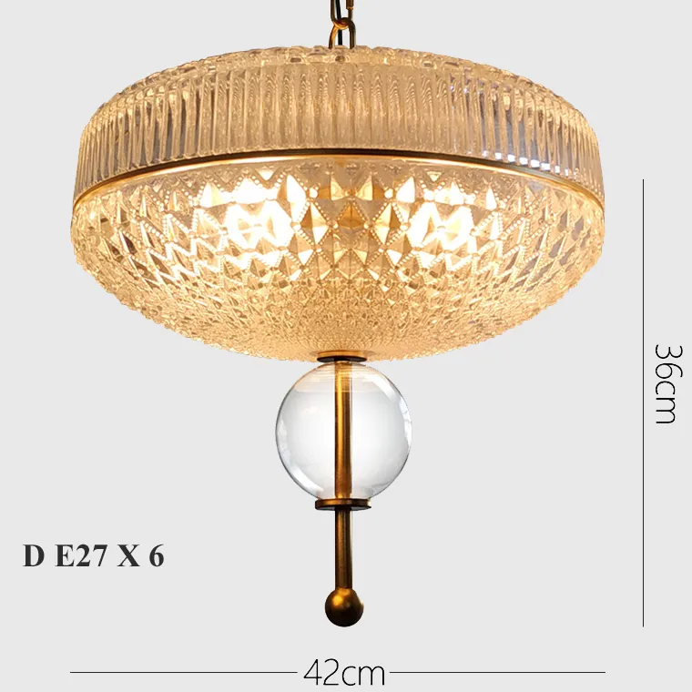 Подвесной светильник Ample выполнен в классическом американском стиле XX века. Такие предметы интерьера каждый мог видеть в культовых фильмах. Основа — стеклянная, свет — приглушенный. Каркас имеет покрытие золотого цвета. Плафон светильника выполнен в трех разных стилях, так что выбрать подходящий под себя сможет даже самый искушенный покупатель.