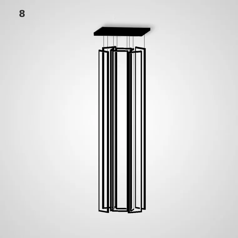 Серия подвесных светильников в виде композиции из светодиодных рамок
