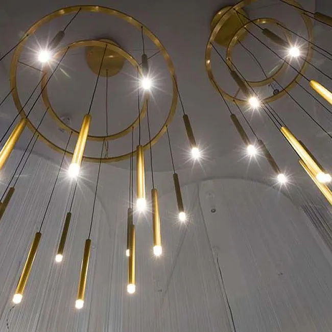 Серия подвесных светильников в виде композиции из светодиодных рамок