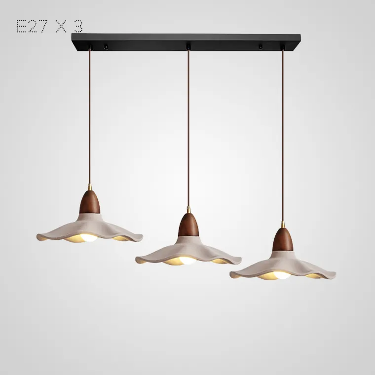 Готовая комбинация подвесных светильников с купольными абажурами из керамики и дерева с природными мотивами