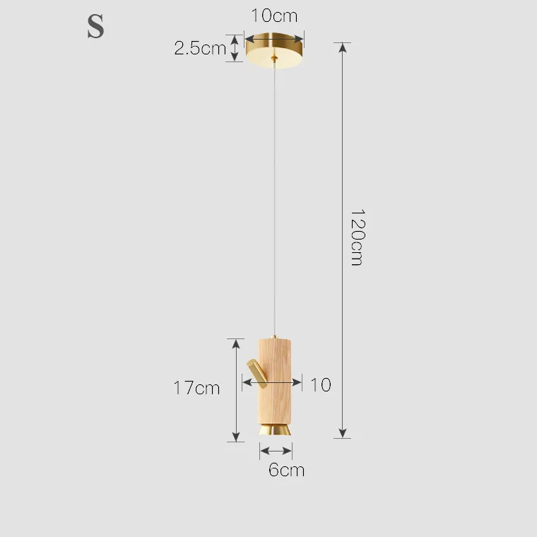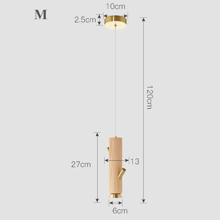 Подвесной светильник цилиндр с деревянным плафоном и металлическими декоративными вставками