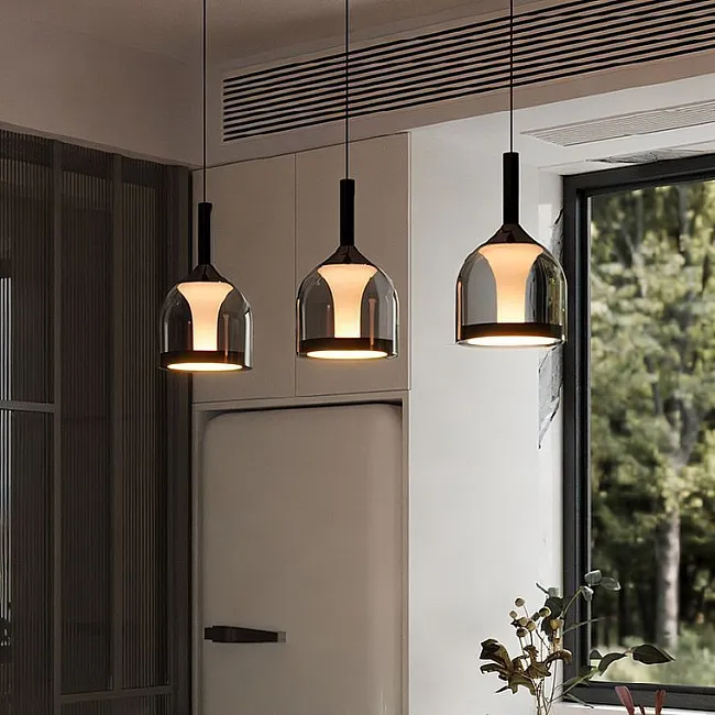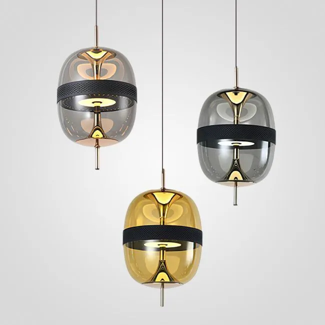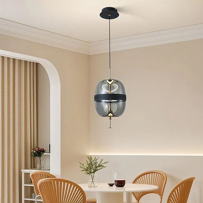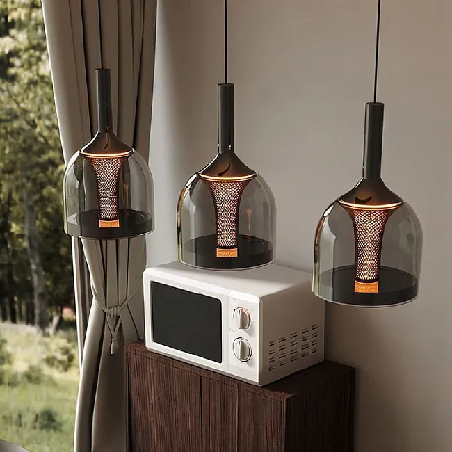 Серия светодиодных светильников со стеклянными плафонами в форме обтекаемых цилиндров и гибкой светодиодной нитью с магнитной растяжкой