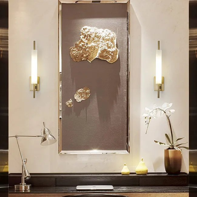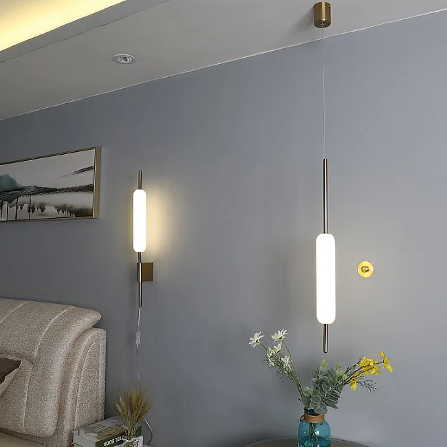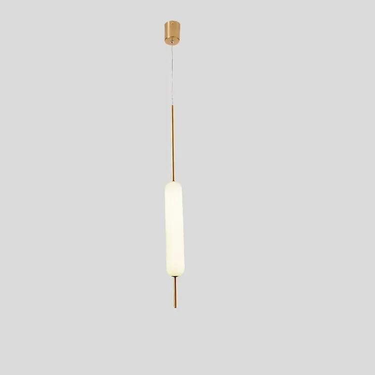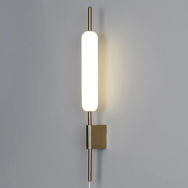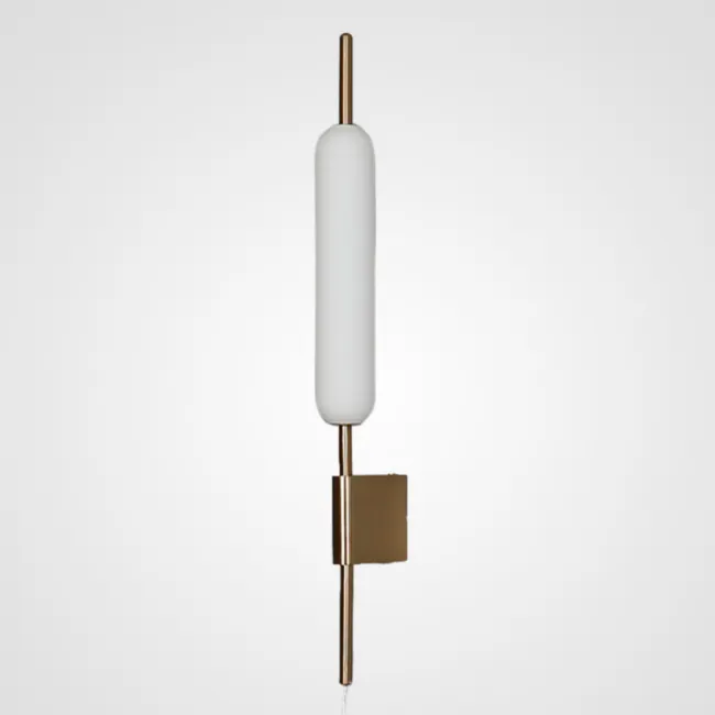 Овальный узкий плафон светильника выполнен из белого стекла и оснащен светодиодной лампой, которая обеспечивает высокую энергоэффективность и долговечность. Корпус светильника выполнен из металла и имеет покрытие “латунь”, что придает ему элегантный и стильный вид.