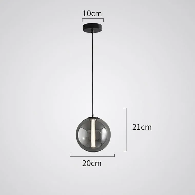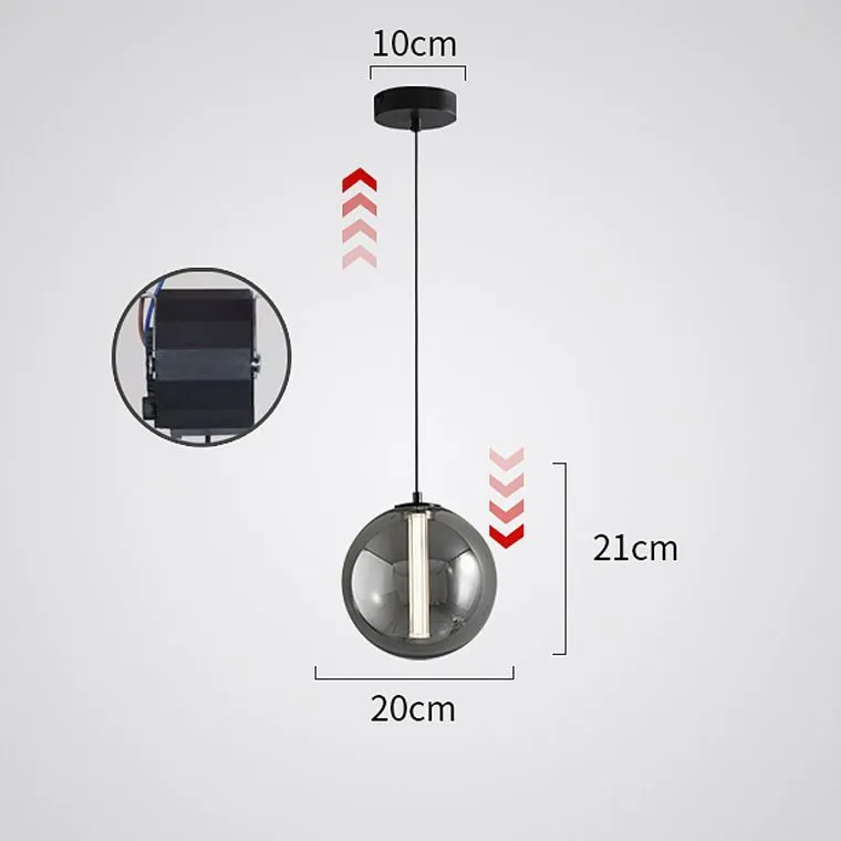 Светодиодный подвесной светильник с шарообразным плафоном из дымчатого стекла