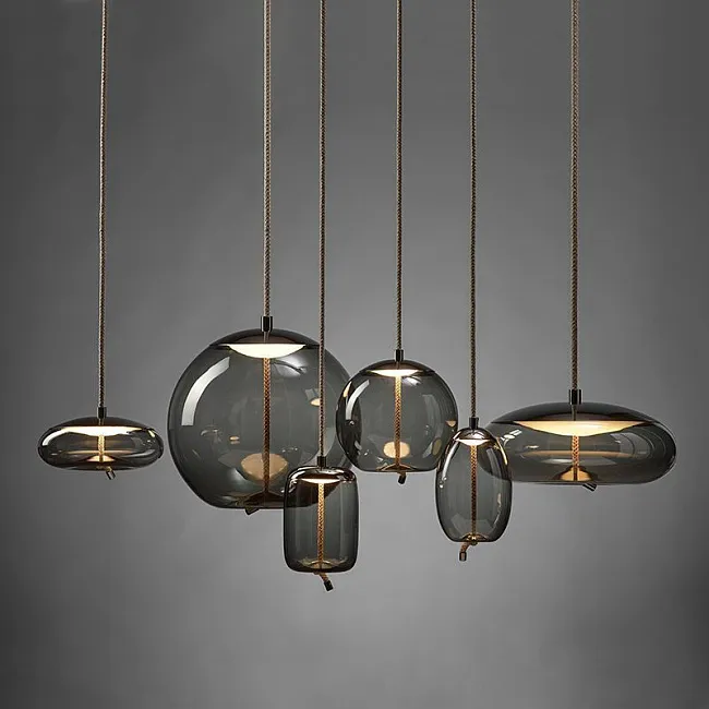 Светодиодный подвесной светильник с шарообразным плафоном из дымчатого стекла