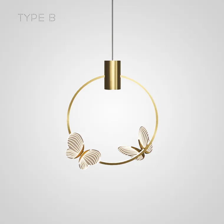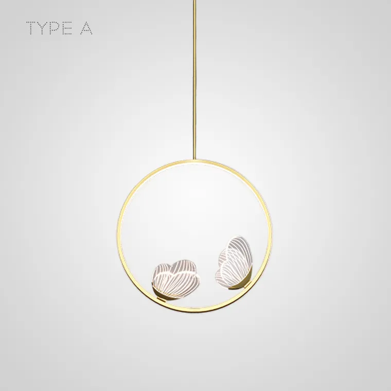 Подвесной светильник с декоративными светящимися бабочками на кольцевом каркасе с LED-свечением