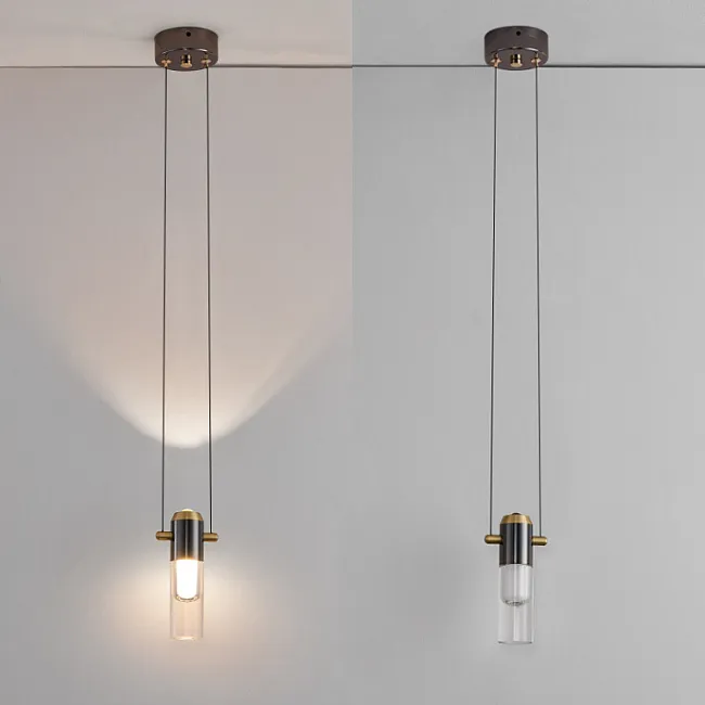 Подвесной светодиодный светильник с подвижным цилиндрическим спотом в дугообразном креплении