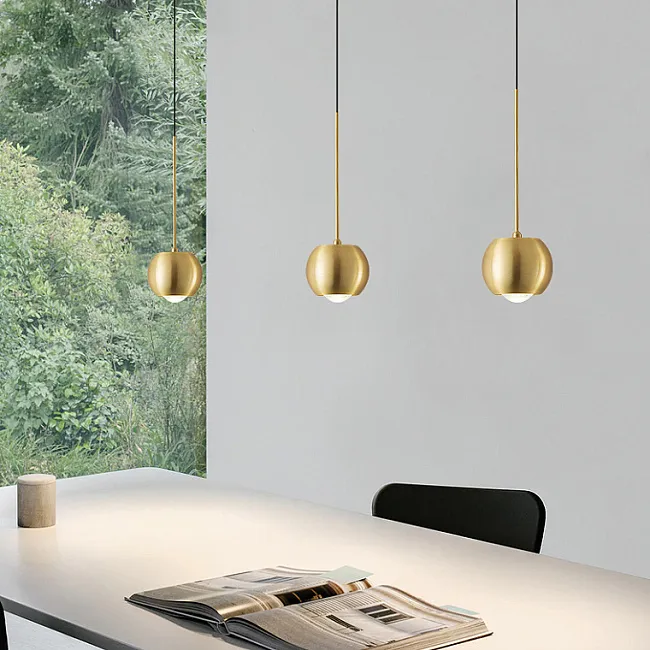 Подвесной светодиодный светильник с белым матовым плафоном шарообразной формы и оптической линзой