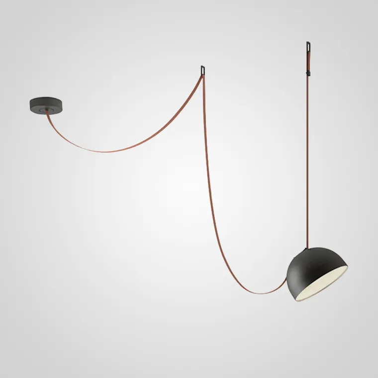Подвесной светодиодный светильник c черным абажуром на красном текстильном тросес регулируемым углом наклона
