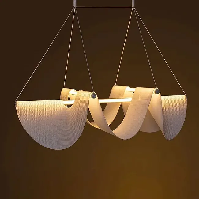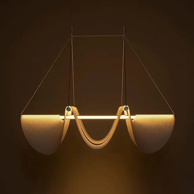 Серия подвесных светодиодных светильников с трапециевидным корпусом из темного и светлого дерева