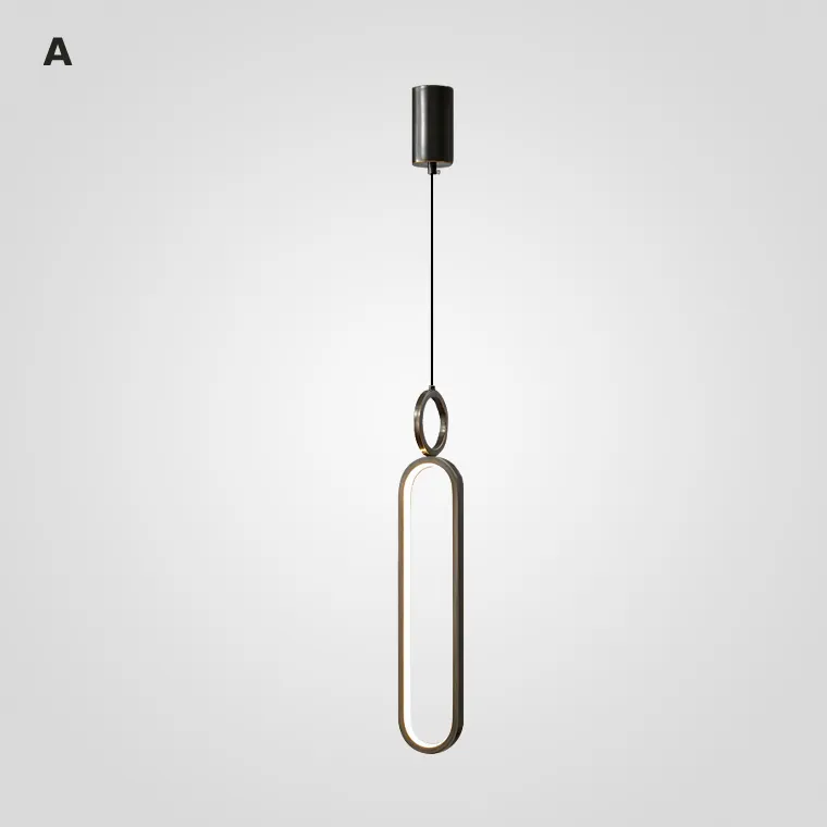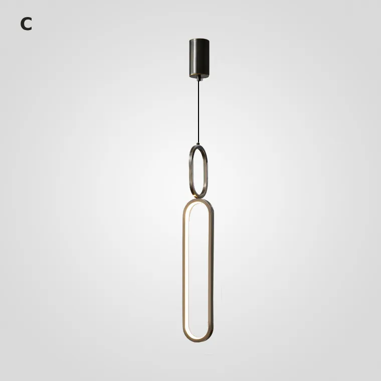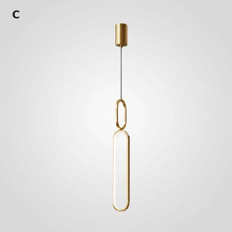 Серия подвесных светильников в виде комбинации разомкнутых и вытянутых колец с внутренней LED-подсветкой