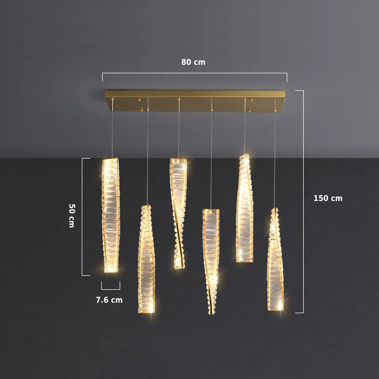 Готовая комбинация подвесных светодиодных светильников со спиралевидными плафонами из многогранных хрустальных пластин