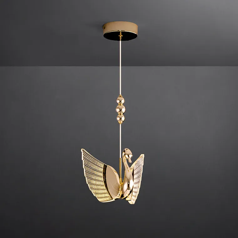 Подвесной светодиодный светильник птица с плафоном в виде лебедя со светящимися крыльями и металлическими бусинами на подвесе