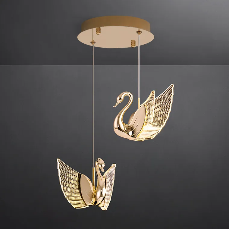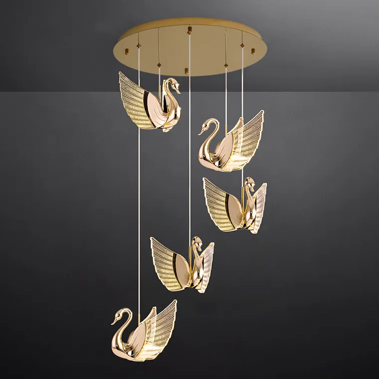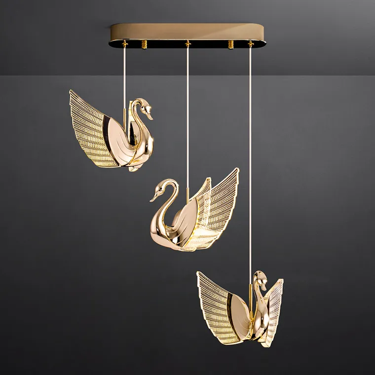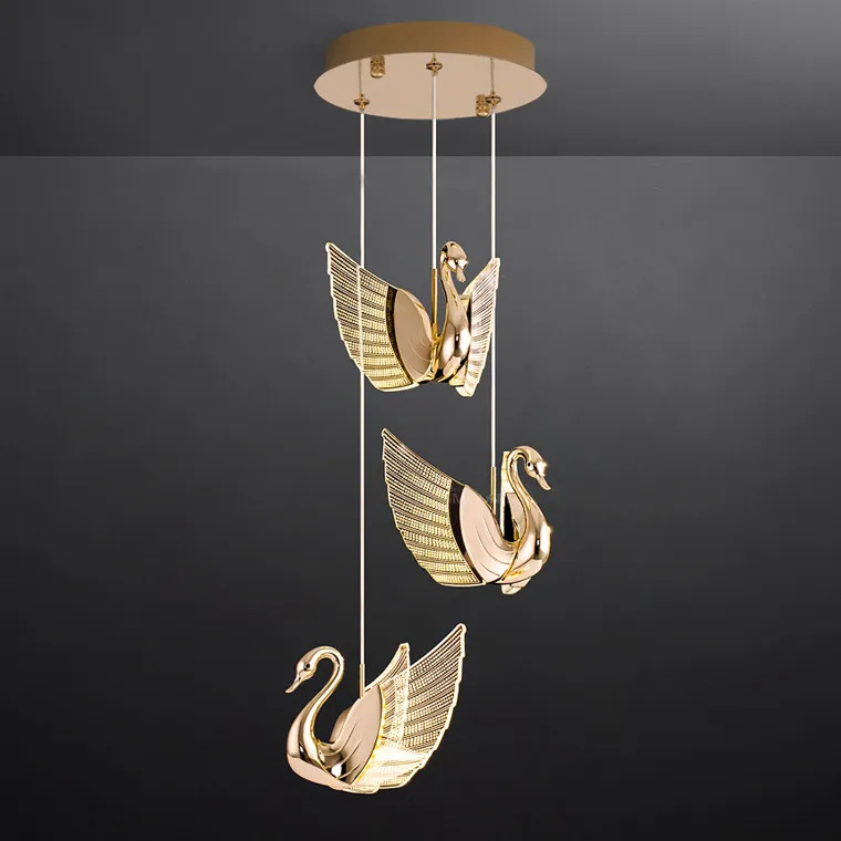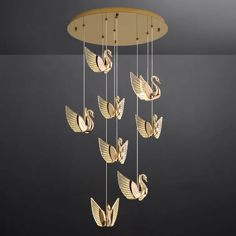 Готовая комбинация подвесных светодиодных светильников с плафонами в виде лебедей со светящимися крыльями