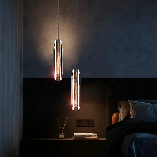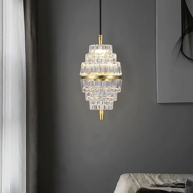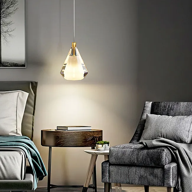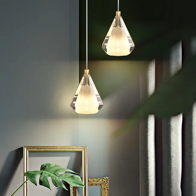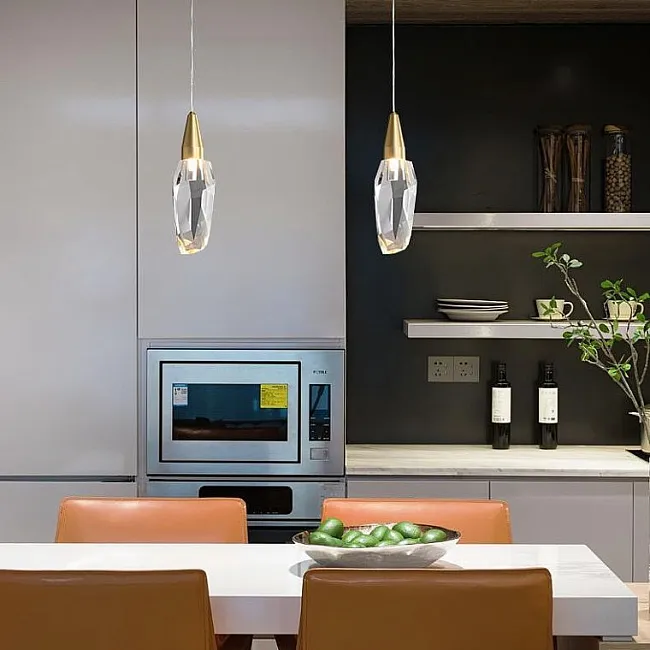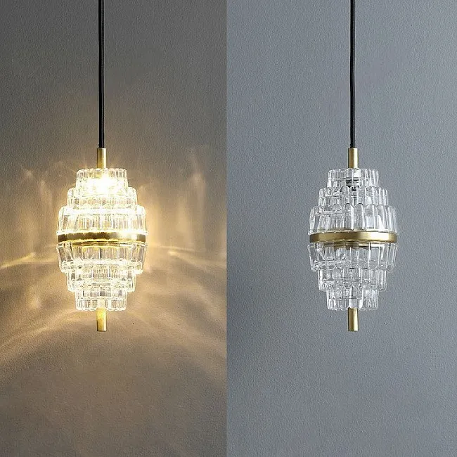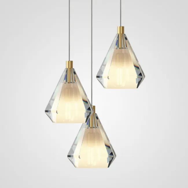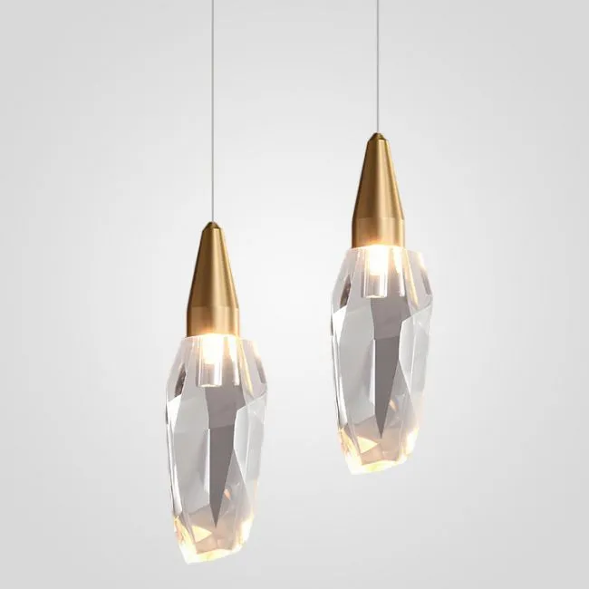 Дизайнерский подвесной светильник с многогранным хрустальным плафоном каплевидной формы