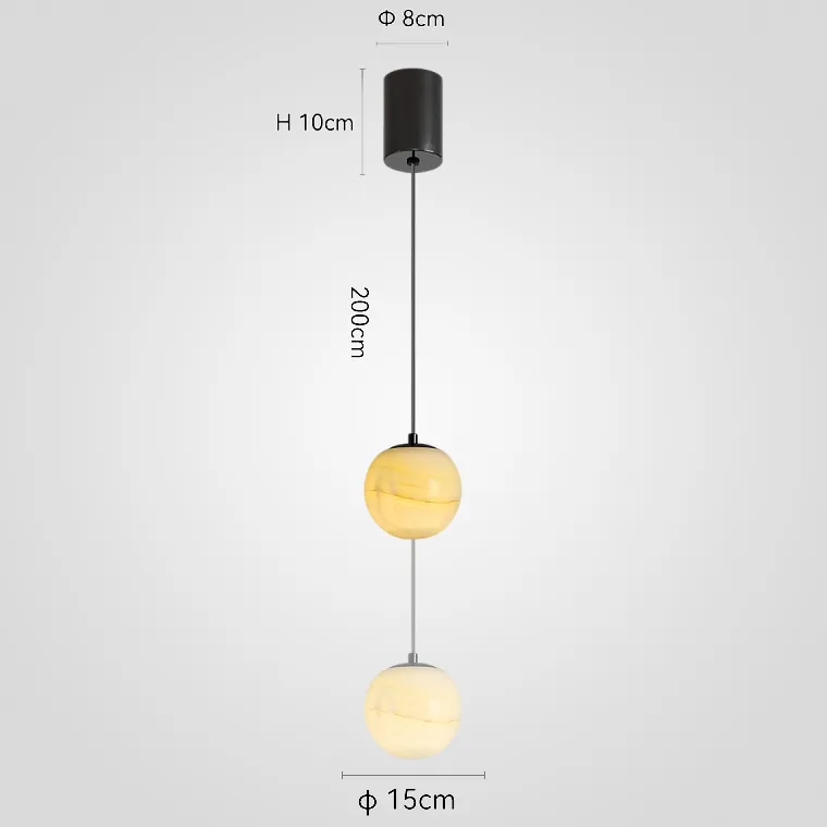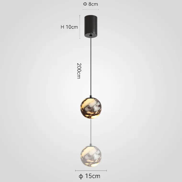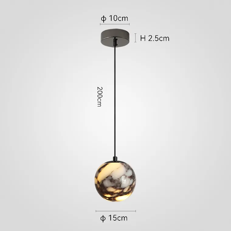 Серия подвесных светильников с шарообразным плафоном из натурального мрамора с фактурой Bulgary Stone и Молочного Нефрита