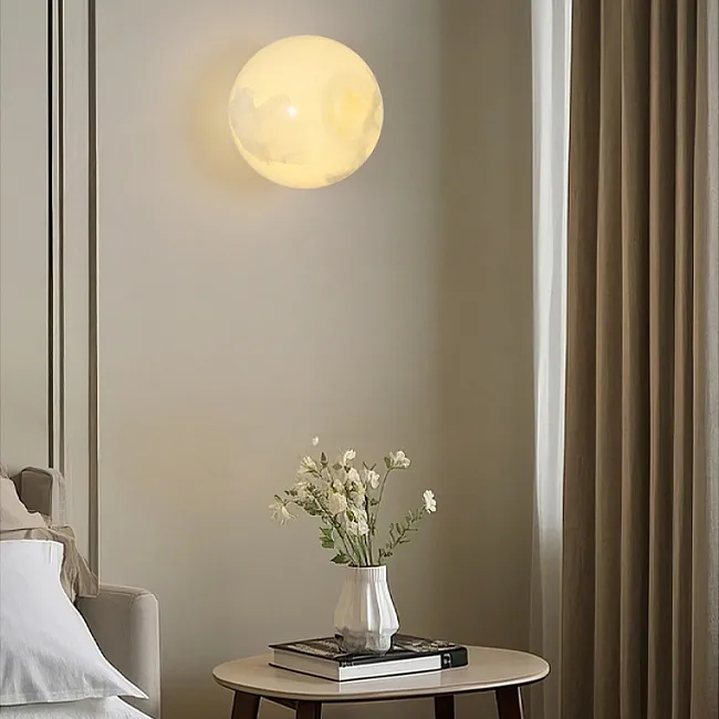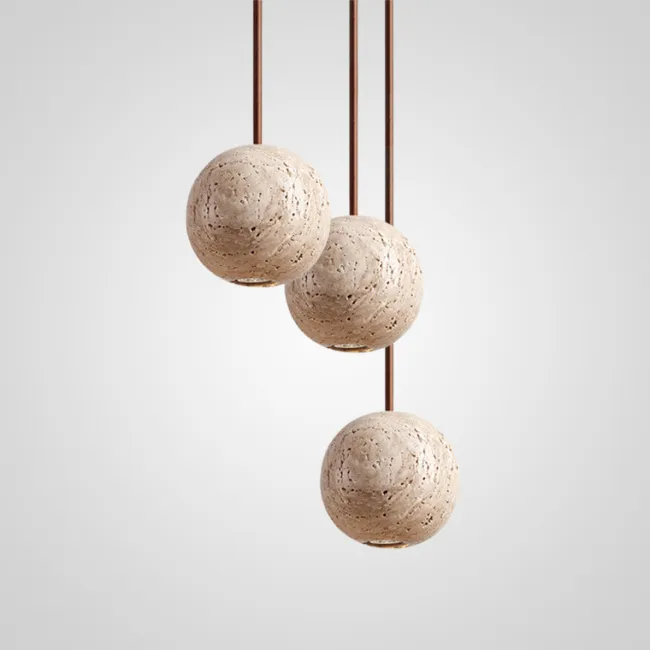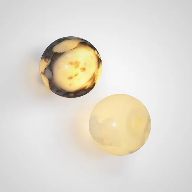 Серия подвесных светильников с шарообразным плафоном из натурального мрамора с фактурой Bulgary Stone и Молочного Нефрита