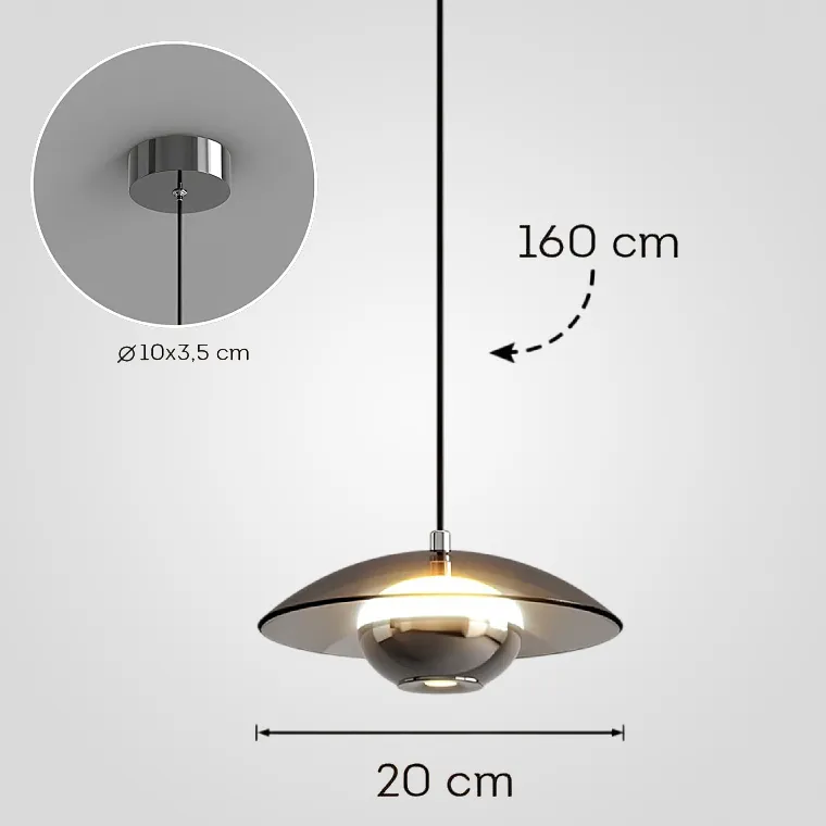 Светодиодный подвесной светильник с дымчатым купольным абажуром и двумя источниками света