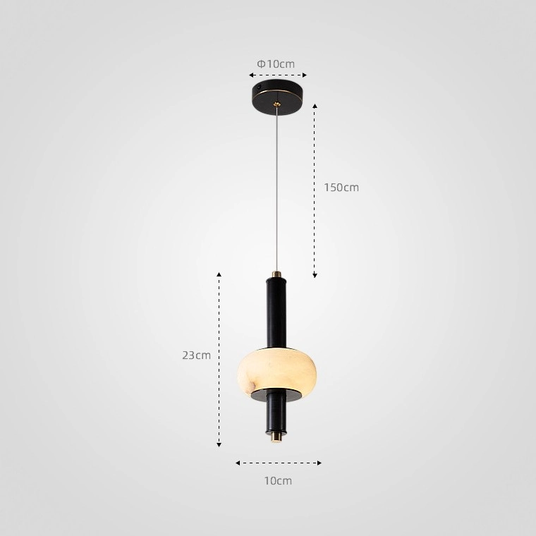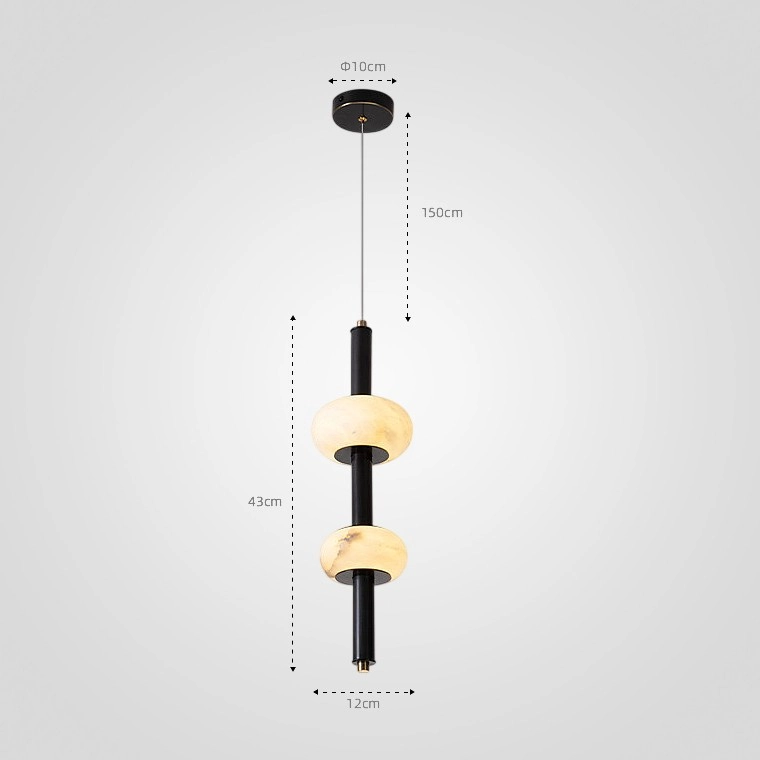 Серия подвесных светильников в виде вертикального стержня с мраморным плафоном в форме эллипса