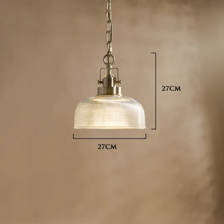 Подвесной светильник в американском винтажном стиле с латунной фурнитурой и округлым плафоном.