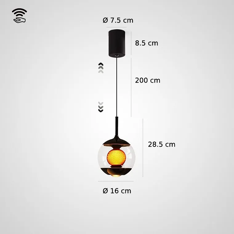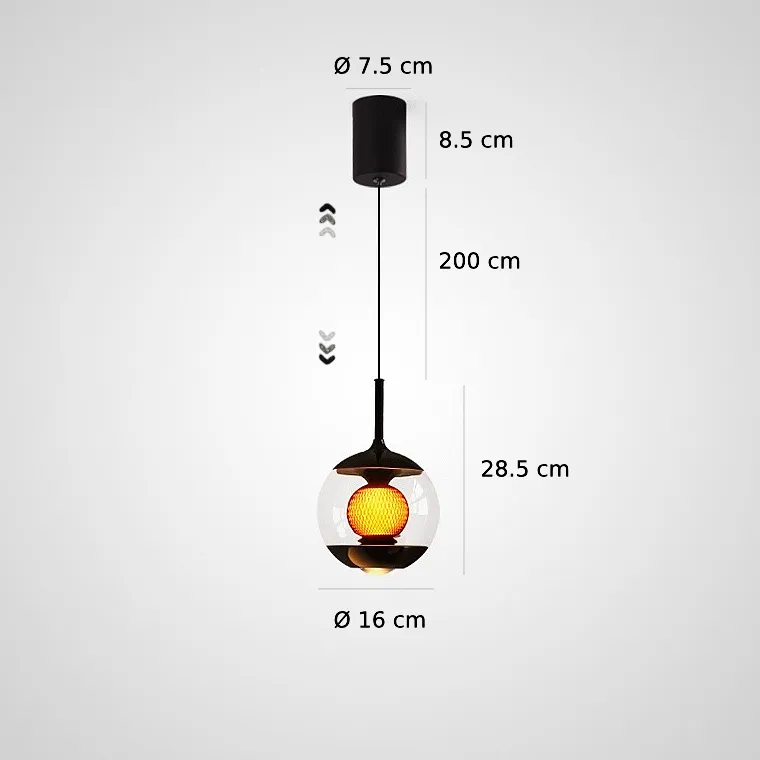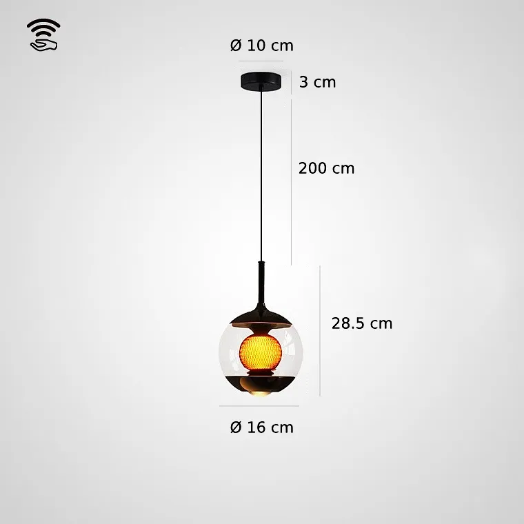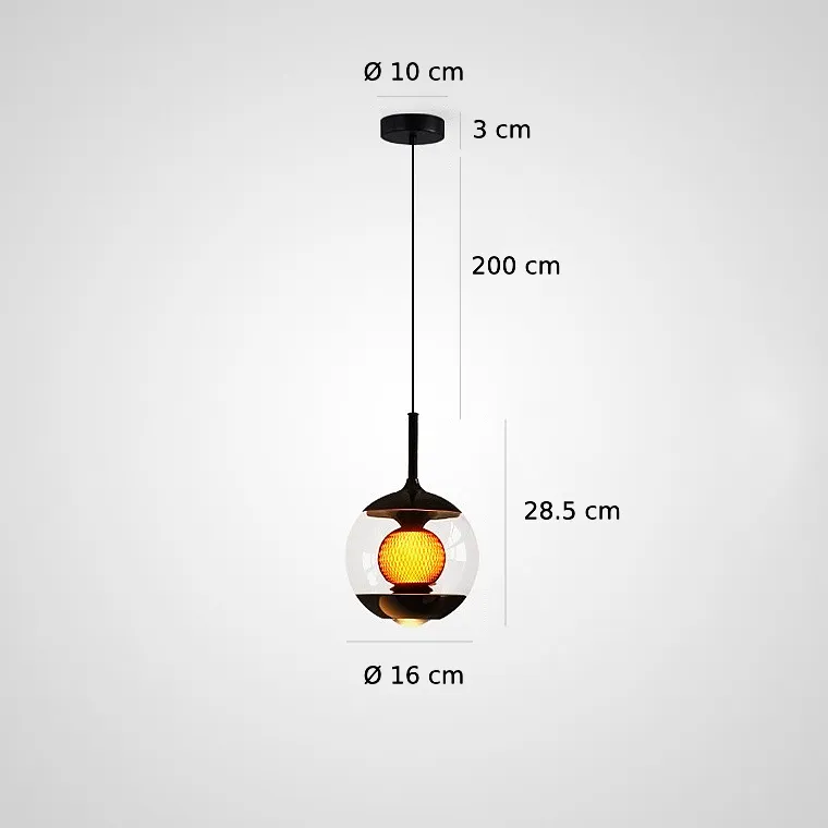 Светодиодный подвесной светильник в форме шара с линзированным и центральным шарообразным источником света с декоративной апертурной решеткой