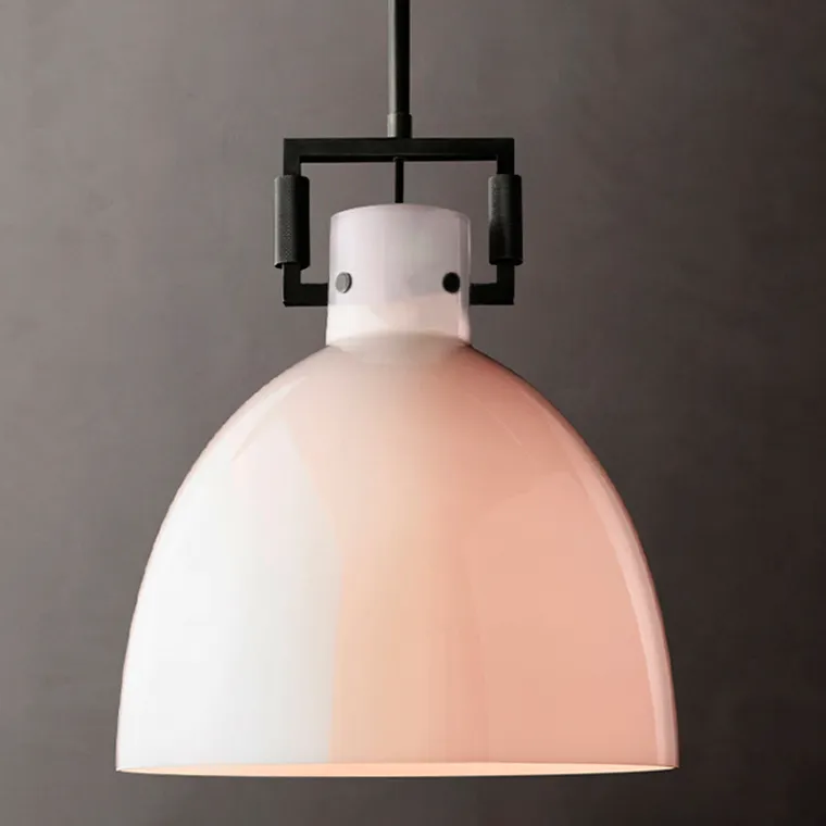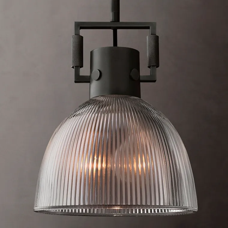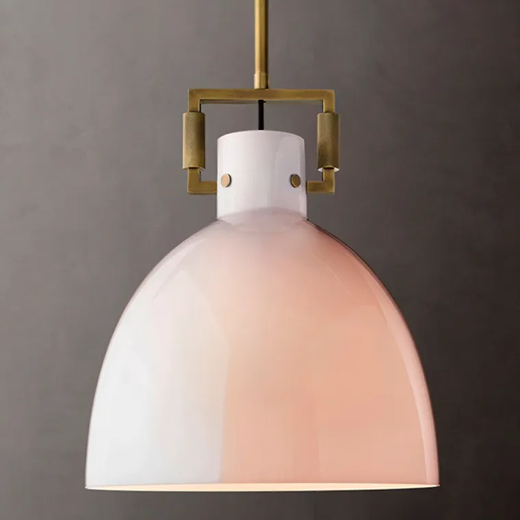 Подвесной светильник в американском ретро стиле со стелянным плафоном в виде конуса и квадратным декоративным крепежом