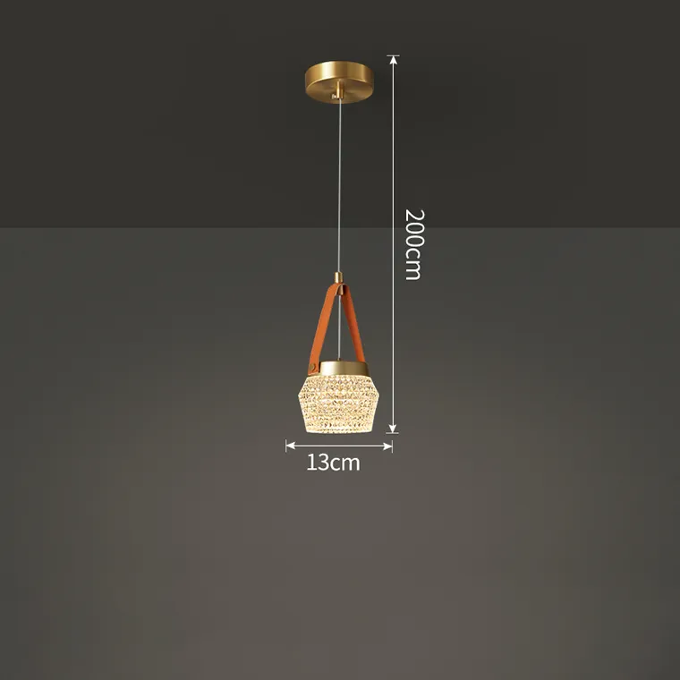 Подвесной светодиодный светильник с многогранным рельефным плафоном на кожаном ремешке
