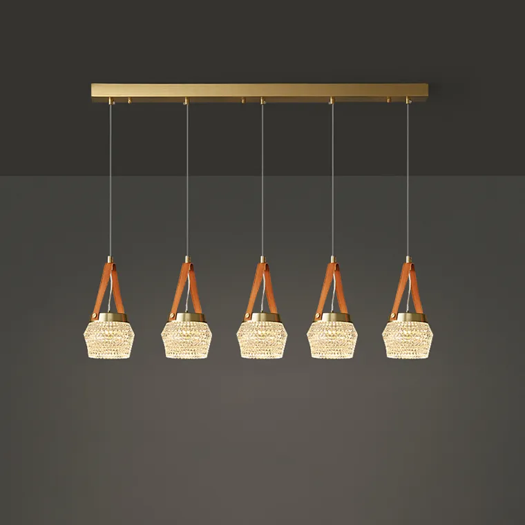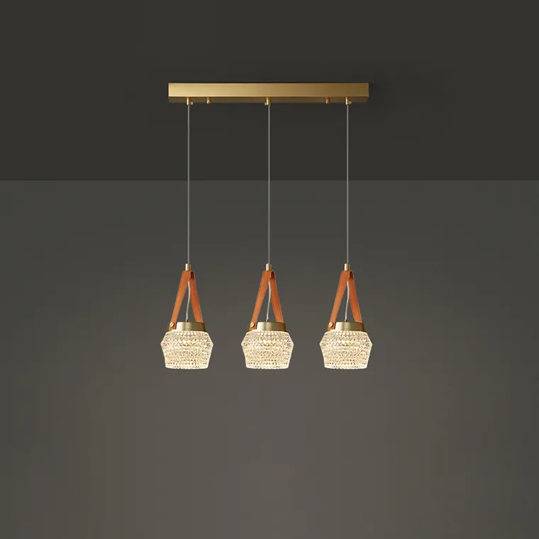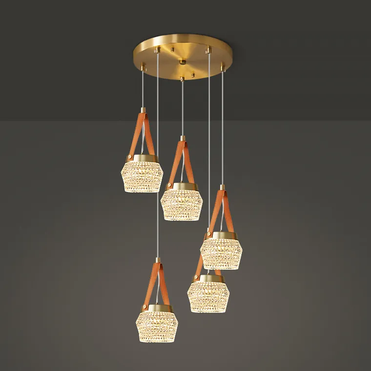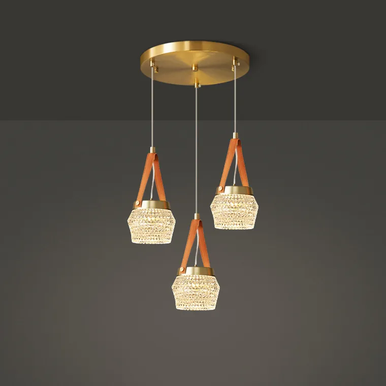 Сборка подвесных светодиодных светильников с многогранным рельефным плафоном на кожаном ремешке