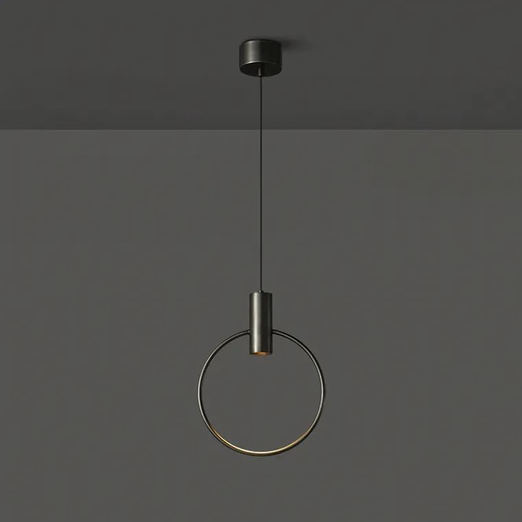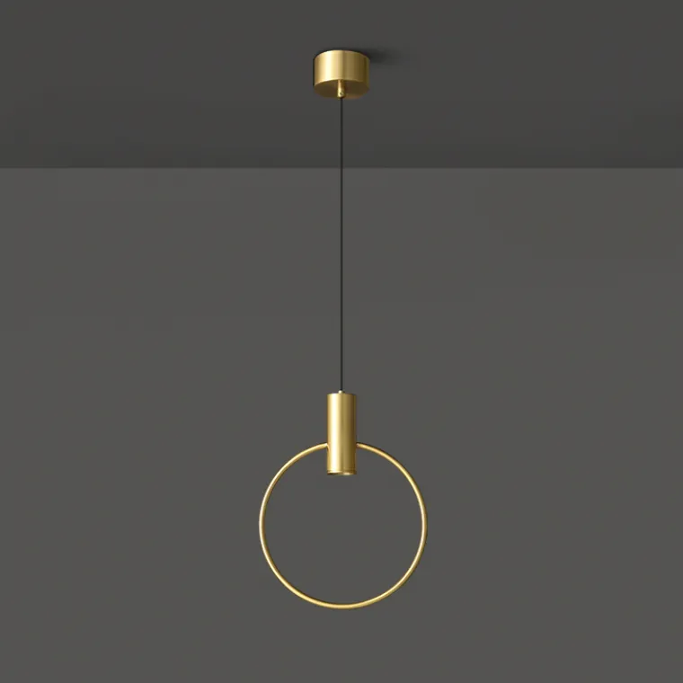Серия подвесных светодиодных светильников с цилиндрическим спотом на кольцевом каркасе из настоящей латуни